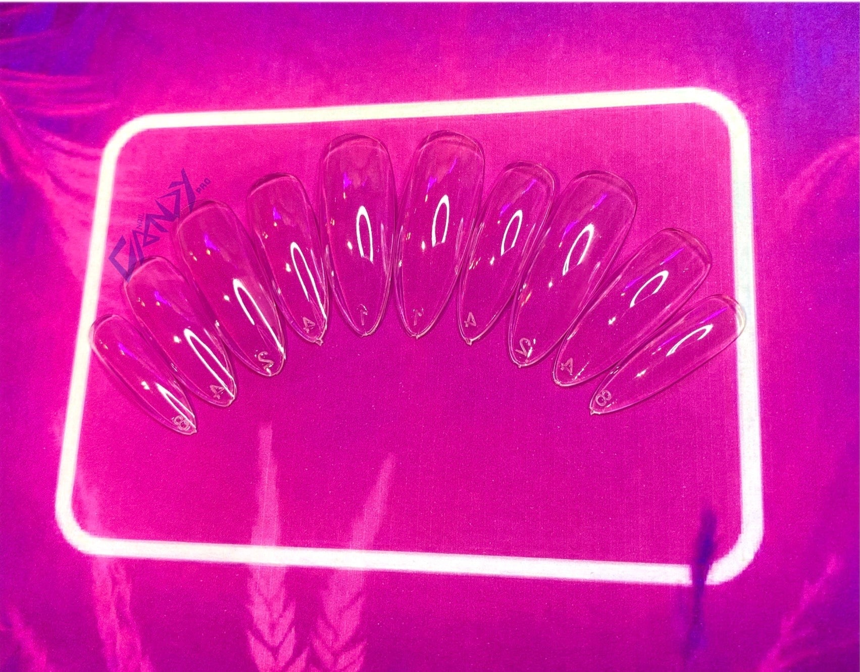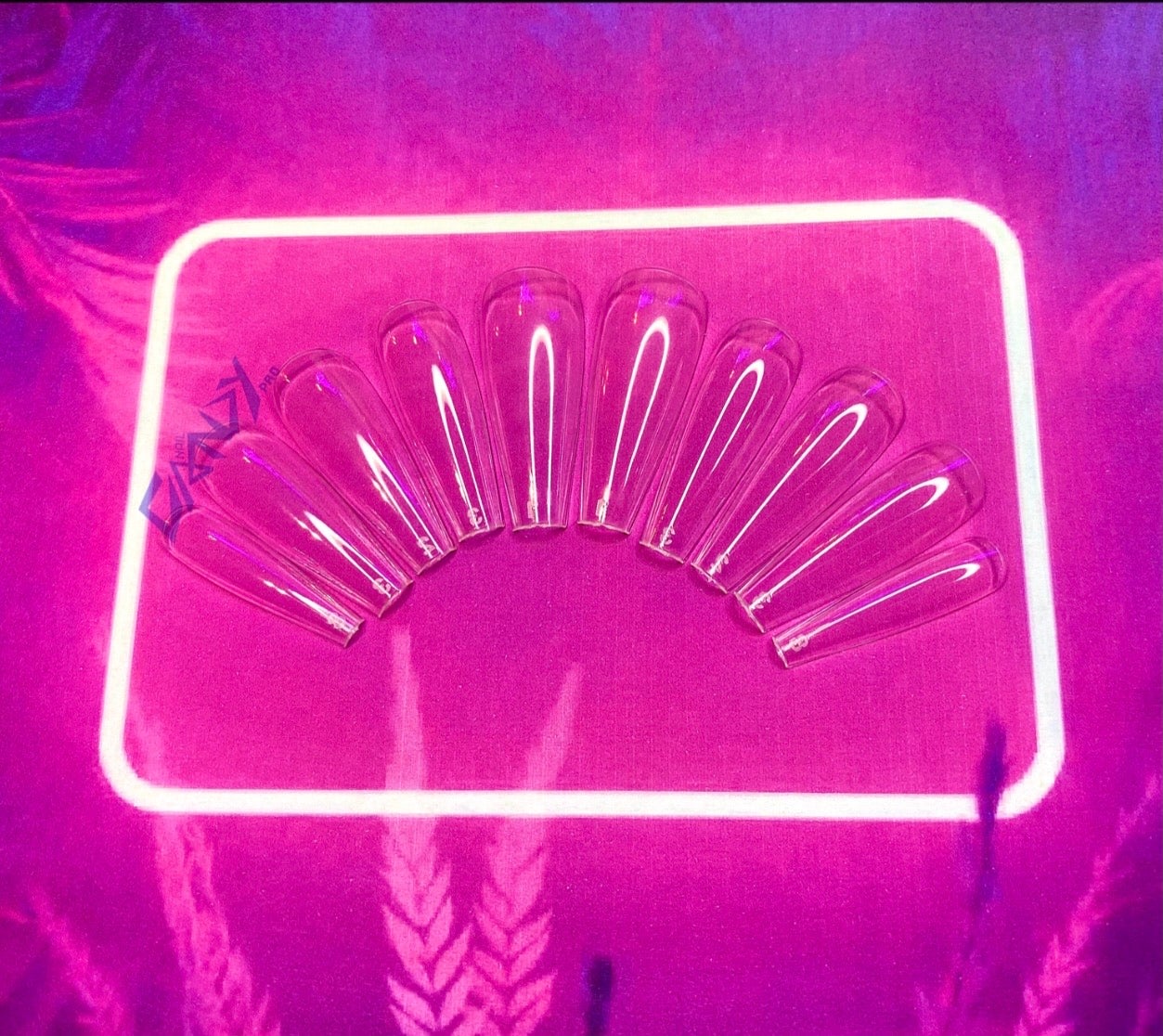 A premium collection of clear press on, acrylic style nails.